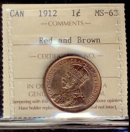 1912 1¢ ICCS MS63RB. Nice lustrous example.