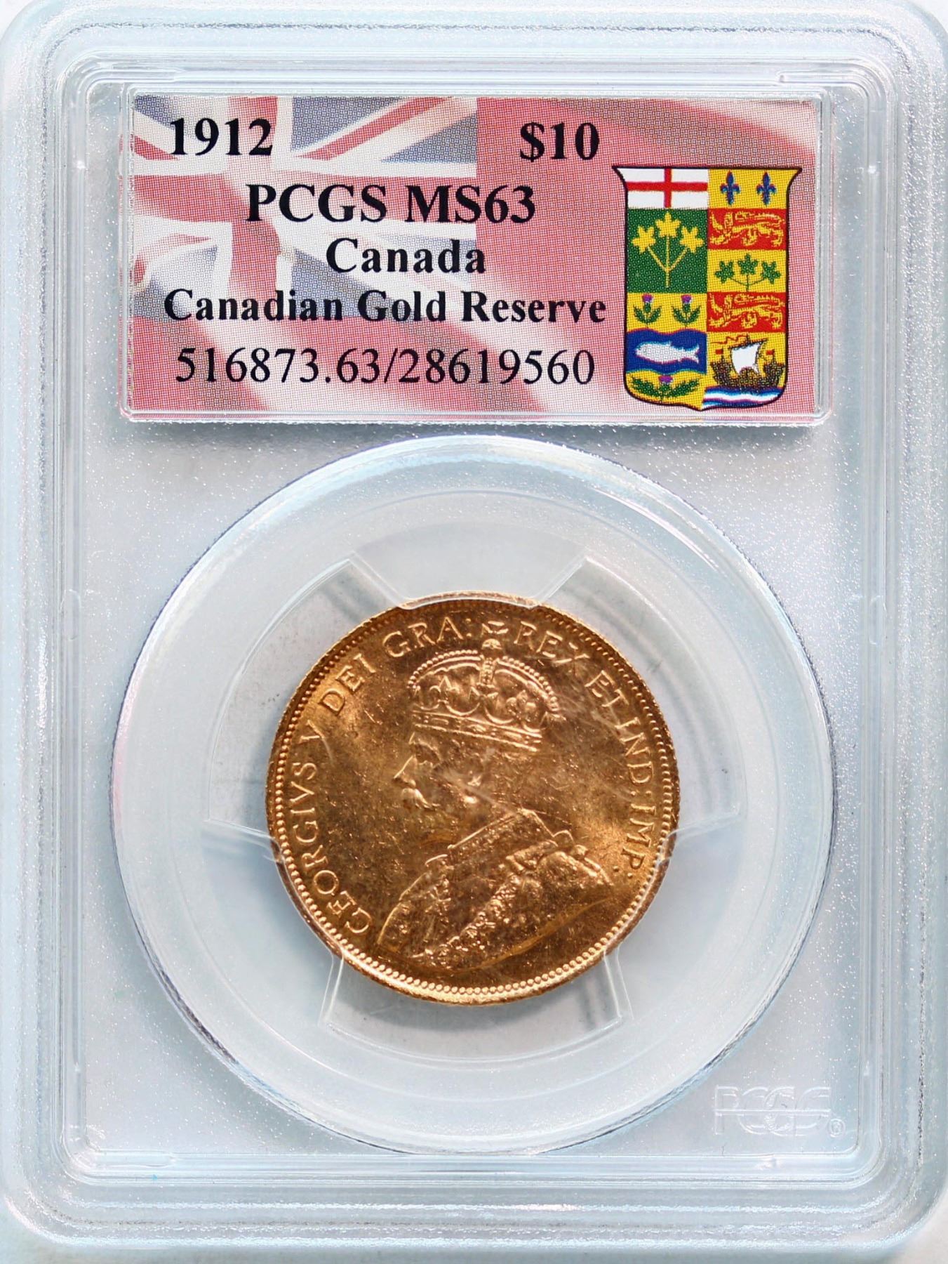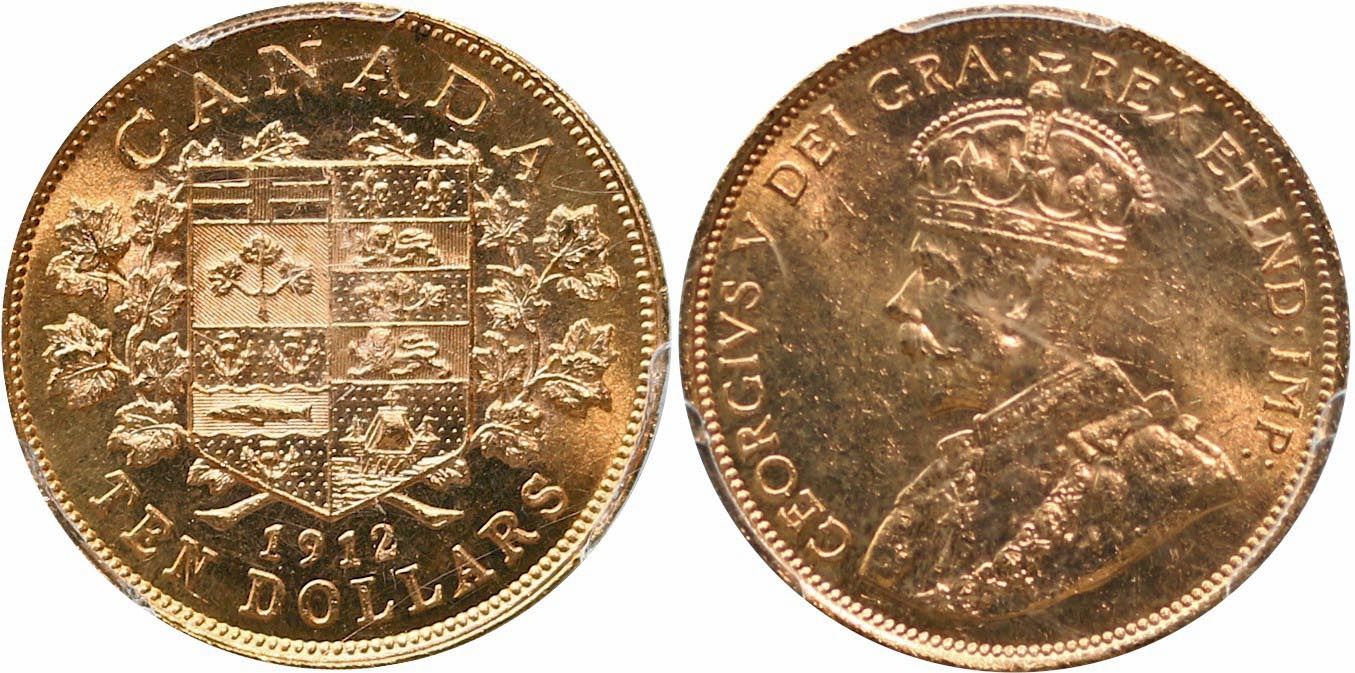 1912 $10 Gold PCGS Choice Mint State-63. Lustrous issue from the Canadian Gold Reserve.
