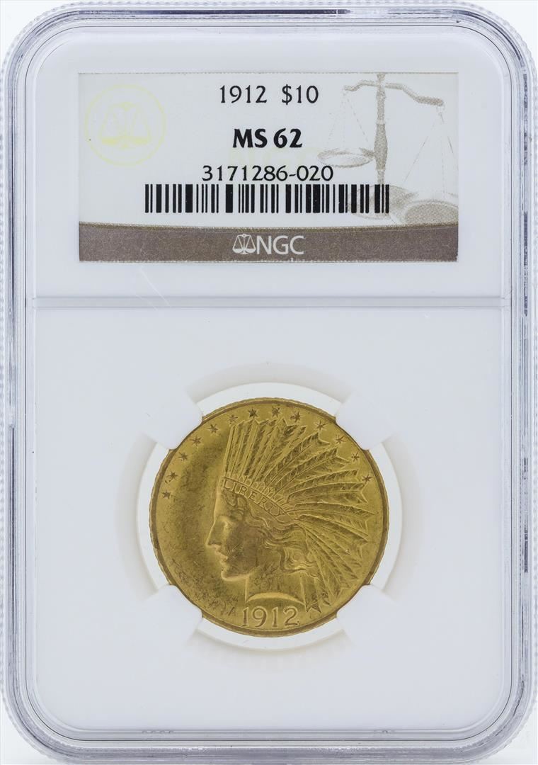 One 1912 $10 Indian Head Eagle Gold Coin NGC MS62. NGC Certified.
