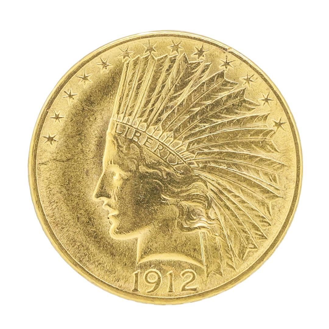 One 1912 $10 Indian Head Eagle Gold Coin.