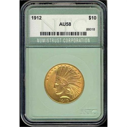 Another lustrous Indian $10 with sharp detail and coppery gold color.