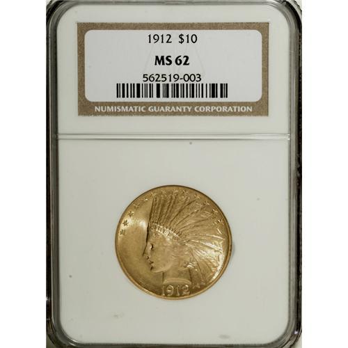 1912 $10 MS62 NGC. Although not a rare date, this issu