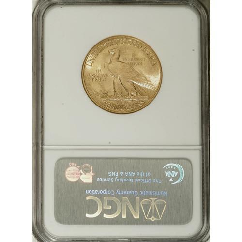 <B>1912 $10 MS62 NGC.</B></I> Although not a rare date, this issue seems to be available only when no one is looking. Once a collector does seek out an example, it seems to disappear entirely. For this reason, we recommend that any potential collector of the series start with this date, and then work beyond that starting point to finish the collection. This is a splendid light yellow-gold example with highly lustrous and frosty surfaces.<BR><BR><b>Shipping:</b> Coins & Currency (<a target="_blank" href="http://www.heritageauctions.com/common/shipping.php">view shipping information</a>)