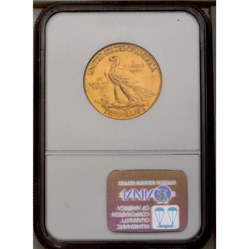 <B>1912<$10> MS62 NGC.</B></I> Myriad small abrasions, including several on the focal points of the obverse, serve to define the grade on this lustrous yellow-gold example.