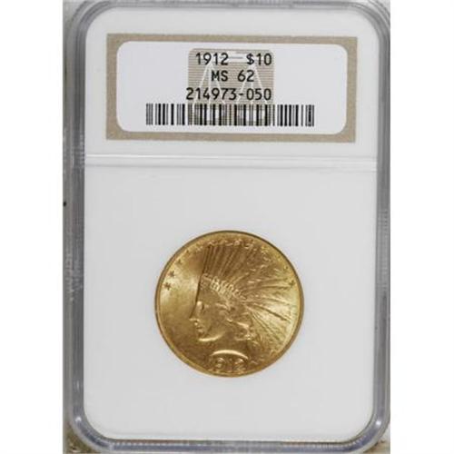 <B>1912 $10 MS62 NGC.</B></I> NGC Census: (1429/827). PCGS Population (1131/758). Mintage: 405,083. Numismedia Wsl. Price for NGC/PCGS coin in MS62: $1,050. (#8871)<BR><BR><B>Coin Engraver:</B> Augustus Saint-Gaudens<BR><BR><b>Shipping:</b> Coins & Currency (<a target="_blank" href="http://www.heritageauctions.com/common/shipping.php">view shipping information</a>)