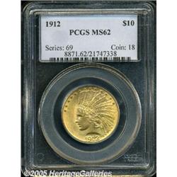 <B>1912 $10 MS62 PCGS.</B></I> A boldly struck and carefully preserved Indian Eagle. The cartwheel shimmer is unencumbered, and the eye appeal is undisputable.