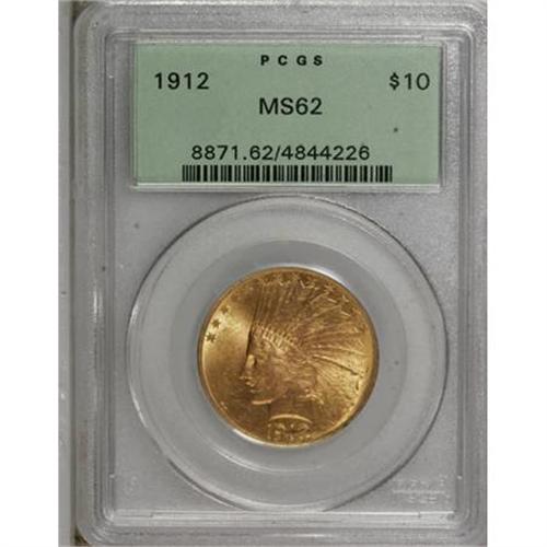 <B>1912 $10 MS62 PCGS.</B></I> PCGS Population (1160/771). NGC Census: (1443/831). Mintage: 405,083. Numismedia Wsl. Price for NGC/PCGS coin in MS62: $1,050. (#8871)<BR><BR><B>Coin Engraver:</B> Augustus Saint-Gaudens<BR><BR><b>Shipping:</b> Coins & Currency (<a target="_blank" href="http://www.heritageauctions.com/common/shipping.php">view shipping information</a>)