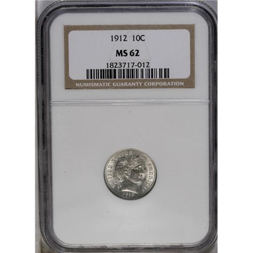 1912 10C MS62 NGC. Softly struck on the date, but shar 1912