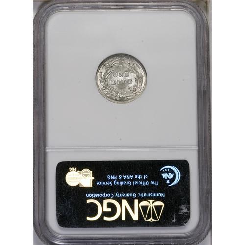 <B>1912<10C> MS62 NGC.</B></I> Softly struck on the date, but sharp elsewhere, with radiant luster and some wispy marks on the portrait. Mostly silver-gray in color with faint lilac overtones on each side.