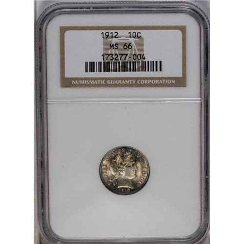 <B>1912<10C> MS66 NGC.</B></I> Lovely autumn-brown and sea-green patination attest to the originality of this lustrous and carefully preserved Premium Gem. A high mintage date, but seldom seen in this lofty grade. Census: 25 in 66, 7 finer (6/06).