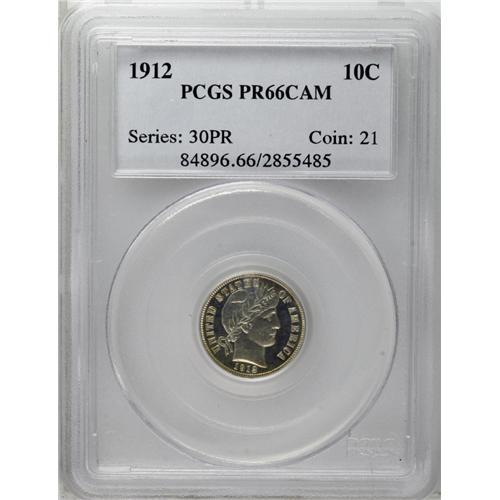 1912 10C PR66 Cameo PCGS. Delightful champagne patina