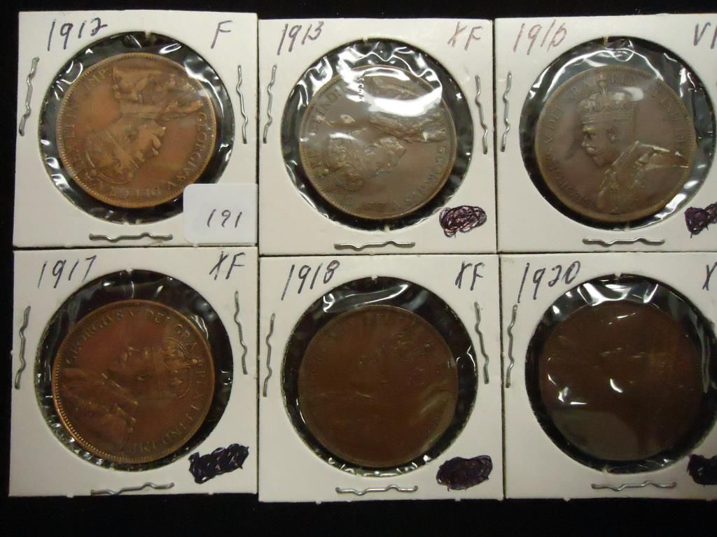 1912,13,16,17,18 & 20 CANADA LARGE CENTS