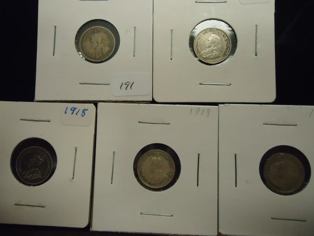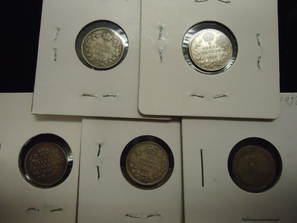1912,13,18,19 & 1920 CANADA SILVER 5 CENTS