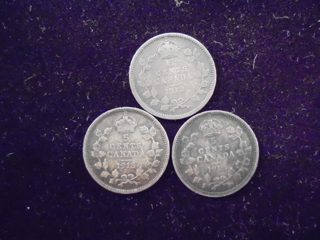 1912,13 & 19 CANADA SILVER 5 CENTS