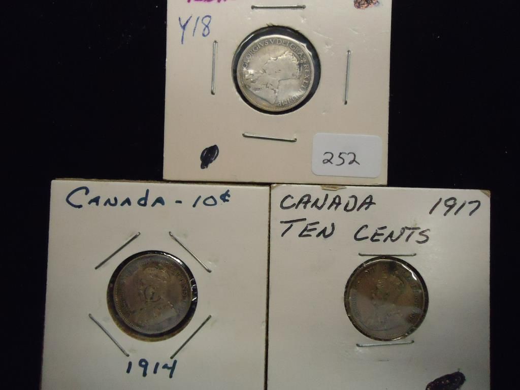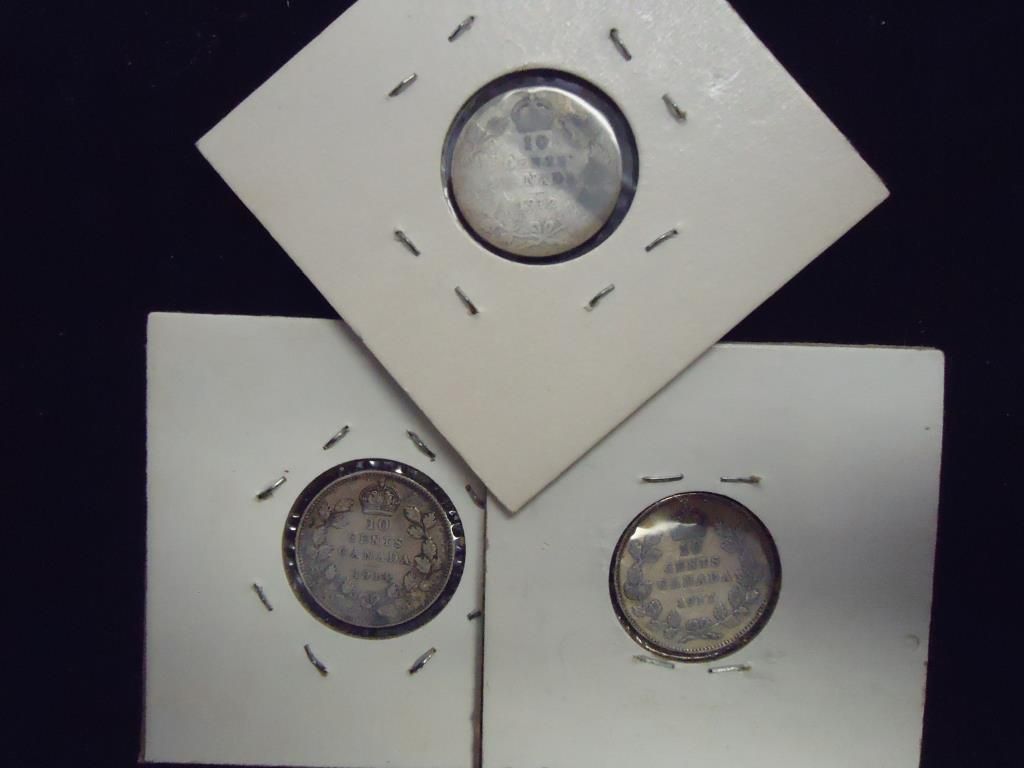 1912,14 & 17 CANADA SILVER 10 CENTS