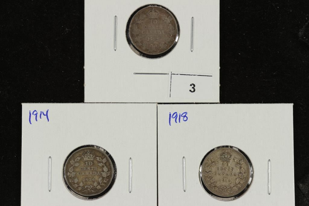 1912,14 & 18 CANADA SILVER 10 CENTS