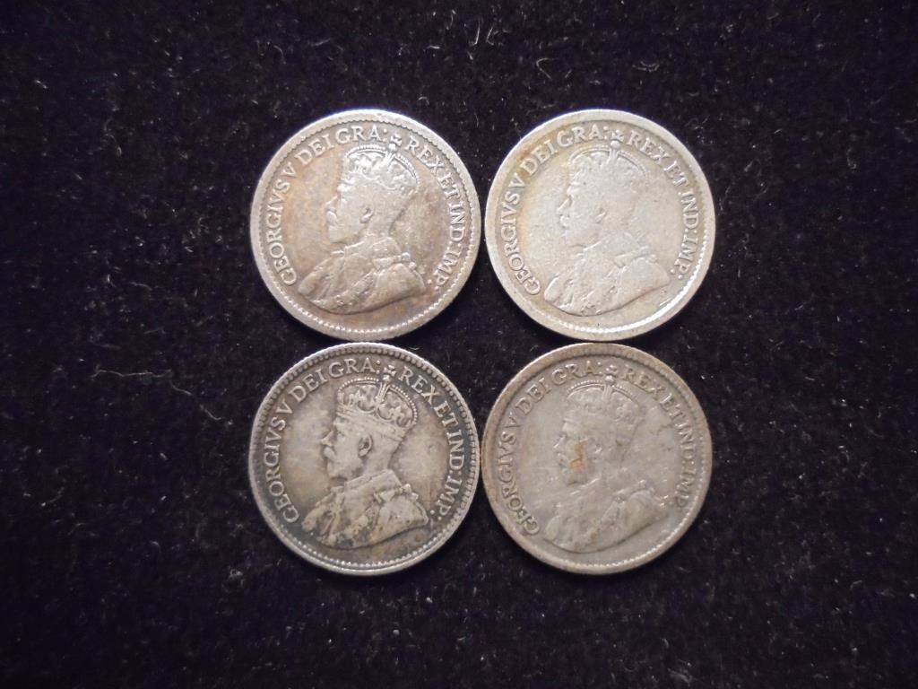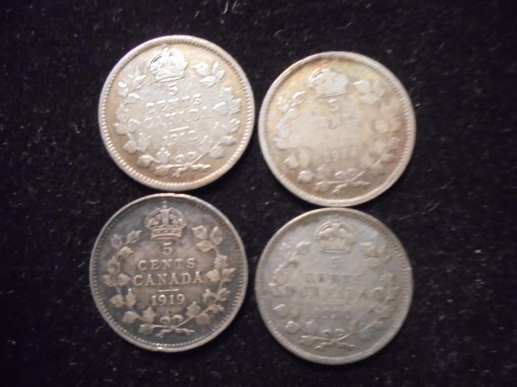 1912,14,19 & 20 CANADA SILVER 5 CENTS