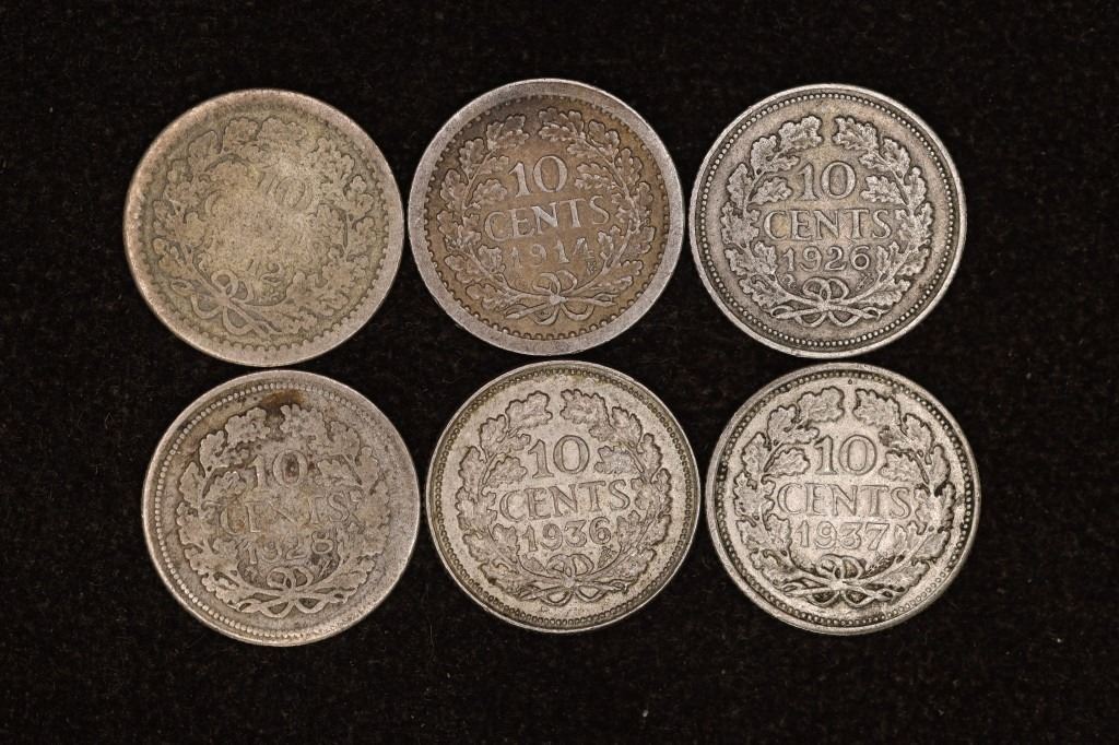 1912, 14, 26, 28, 36 & 1937 NEDERLANDS SILVER 10