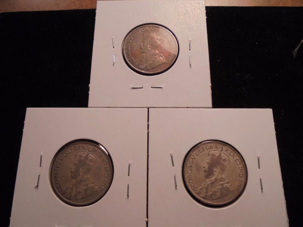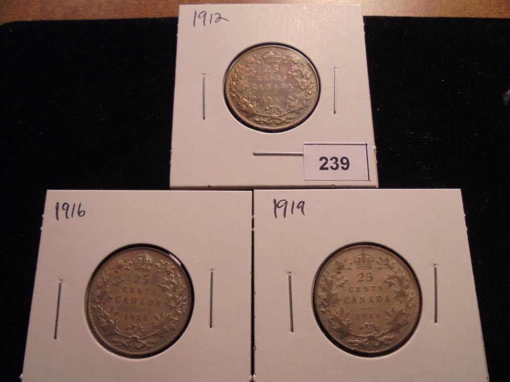 1912,16 & 19 CANADA SILVER 25 CENTS