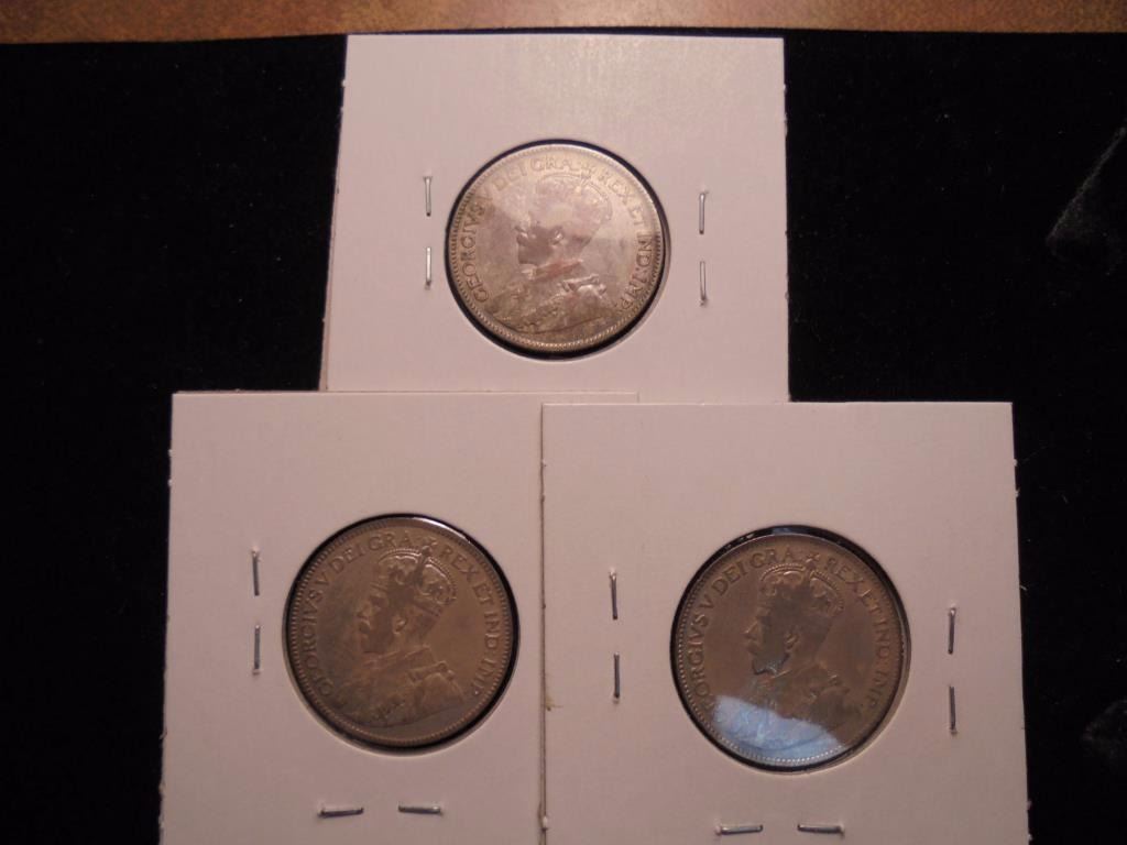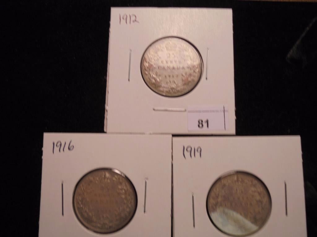 1912,16 & 19 CANADA SILVER 25 CENTS