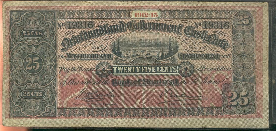 1912-1913 25¢ NF-7c #19316, A nice example F/VF.