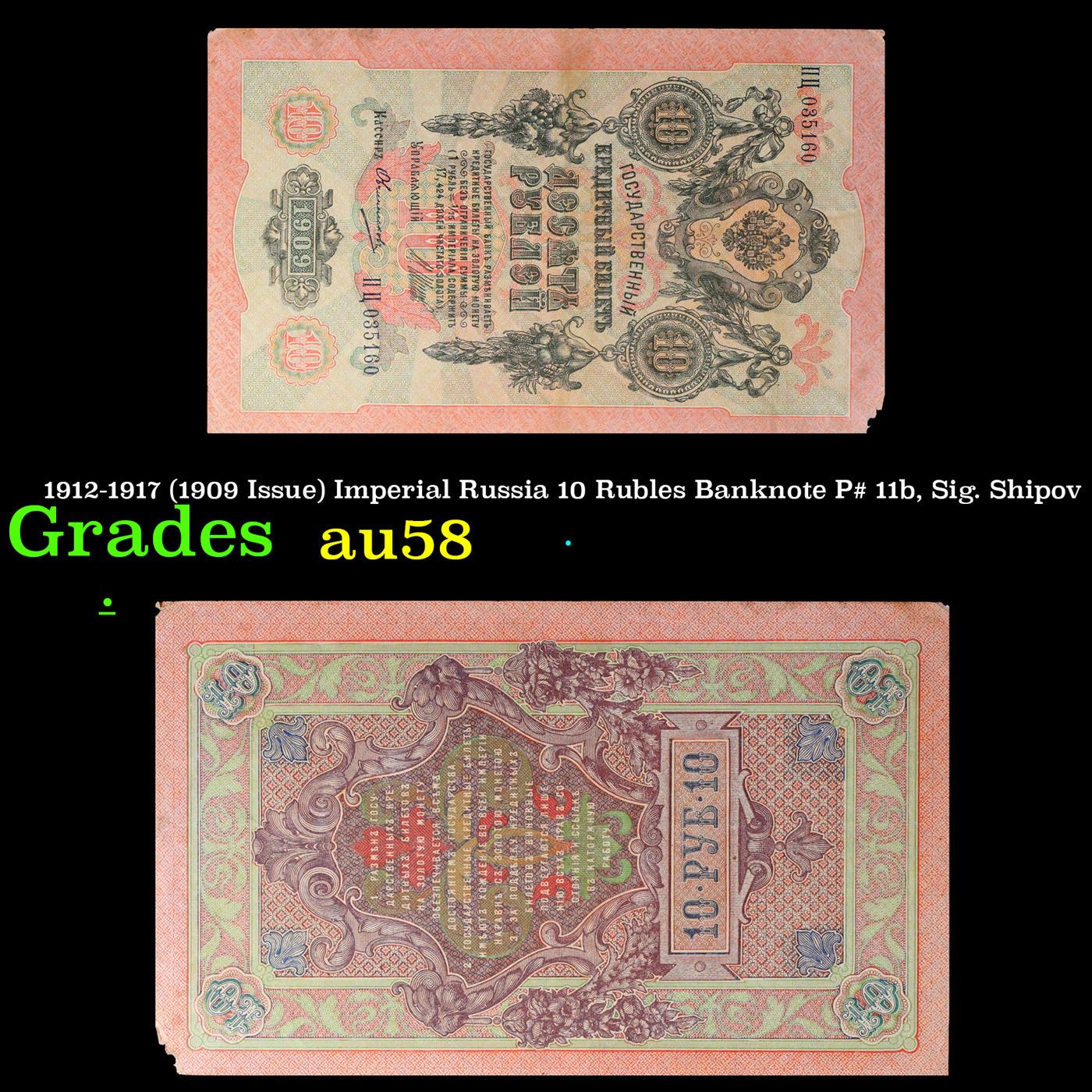 1912-1917 (1909 Issue) Imperial Russia 10 Rubles Banknote P# 11b, Sig. Shipov Grades Choice AU/BU Sl