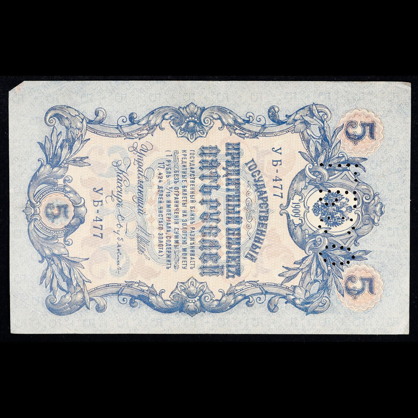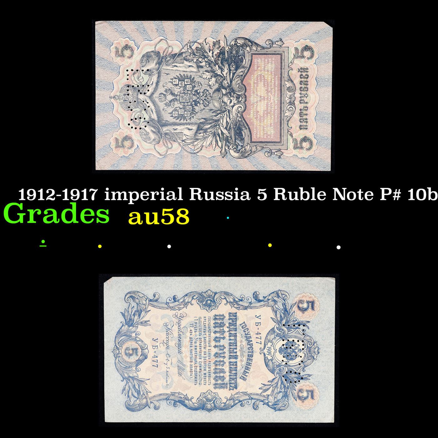 1912-1917 imperial Russia 5 Ruble Note P# 10b Grades Choice AU/BU Slider.
