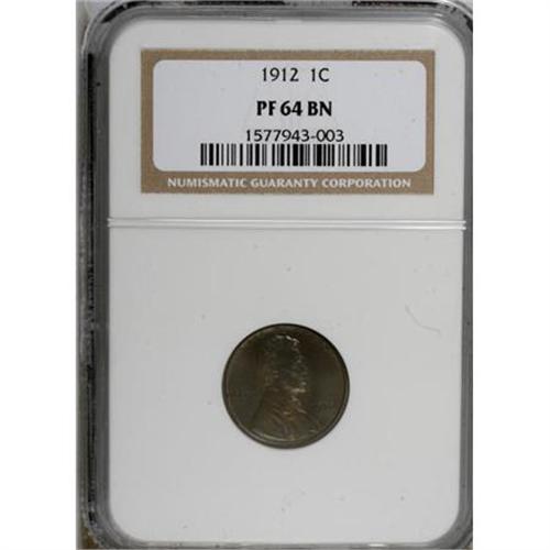 <B>1912 1C PR64 Brown NGC.</B></I> NGC Census: (42/36). PCGS Population (28/38). Mintage: 2,145. Numismedia Wsl. Price for NGC/PCGS coin in PR64: $375. (#3312)<BR><BR><B>Coin Engraver:</B> Victor D. Brenner<BR><BR><b>Shipping:</b> Coins & Currency (<a target="_blank" href="http://www.heritageauctions.com/common/shipping.php">view shipping information</a>)