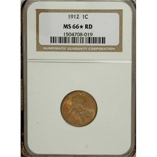 <B>1912 1C MS66 <img border='0' src='http://www.heritagecoins.com/images/star.gif' width=10 height=10> Red NGC.</B></I> Vivid copper-orange with a splash of strawberry-red on each side. Intricately struck and unabraded with only minute carbon. As of (8/07), the only 1912 cent to receive a Star designation from NGC.<BR><BR><B>Coin Engraver:</B> Victor D. Brenner<BR><BR><b>Shipping:</b> Coins & Currency (<a target="_blank" href="http://www.heritageauctions.com/common/shipping.php">view shipping information</a>)