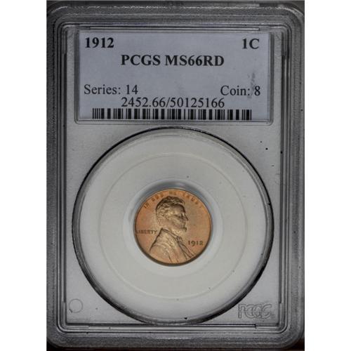 <B>1912<1C> MS66 Red PCGS.</B></I> Bright and attractive, with radiant luster throughout. The strike is sharp on the motto and Lincoln's head, with strong definition on the reverse devices too. Although not the technically finest example of this date, the present coin is certainly quite respectable and worthy of any collection. Population: 57 in 66, 7 finer (3/06).<BR><I>From The Kendall Marie #4 All-Time Finest PCGS Registry of Lincoln Cents with Varieties, Circulation Strikes, 1909-1958.</B></I> <BR><BR><B>Important notice:</B> Heritage usually auctions material at the rate of 200-250 lots per hour. On some occasions eBay Live bid software or the Internet may not be able to keep up with the pace of the auction. We recommend placing a realistic absentee bid now as insurance to avoid disappointment. Occasionally the auctioneer may eliminate or reject an eBay Live bid, and the auctioneer may also reopen a lot after the close of the eBay live bidding (usually because we missed an audience bid), and may reject your bid even if it shows you as the winning bidder. By bidding via eBay Live, you agree that Heritage may award the lot to another bidder at its sole discretion under the circumstances described above or any other reasonable circumstances. Since eBay bids are not shown to us until we open the lot on the floor, we treat those bids just like floor bids. In most cases the floor responds before the eBay bid is presented to us, due to Internet lag time, so for consistency we have made it a policy that floor bids are always considered first over tie eBay live bids. Also please note that all Heritage lots purchased through eBay Live carry a 20% Buyer's Premium. Please make sure you read the Terms and Conditions before you bid. This lot is being auctioned in conjunction with a live floor auction by Heritage Galleries & Auctioneers. All final auction and invoice information will be supplied by Heritage Galleries & Auctioneers, and all other information should be considered preliminary. Lot:475 <BR><BR><B>Winning Notification and Billing:</B> After the FINAL session in this auction is complete, Heritage will send e-mail and snail mail invoices. This process normally takes several days. All final auction and invoice information will be supplied by Heritage Galleries & Auctioneers, and all other information should be considered preliminary. <BR><BR>This auction will be conducted on a live auction floor and over the Internet through eBay Live. If you choose to place an absentee bid, please take a moment to <font color='#0000ff'><u><a href='http://pages.ebay.com/liveauctions/help/before/laabsentee.html'>learn how eBay Live absentee bidding works</a></u></font><font color='#000000'>