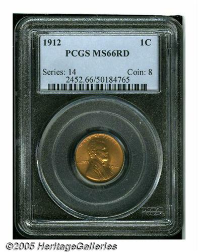 <B>1912<1C> MS66 Red PCGS.</B></I> Sharply detailed with fiery orange-red color consistently seen over blazing matte-like surfaces. While not particularly scarce in lesser Mint State grades, high quality pieces such as this enjoy great popularity and are found far less frequently. Population: 55 in 66, 7 finer (6/05).