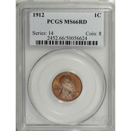 <B>1912 1C MS66 Red PCGS.</B></I> This lovely Gem is sharply detailed with full red color and hints of pale blue toning at the center of the obverse. Population: 61 in 66, 7 finer (12/06).<BR><BR><b>Shipping:</b> Coin/Currency (<a target="_blank" href="http://www.heritageauctions.com/common/shipping.php">view shipping information</a>)