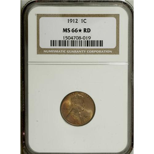 <B>1912 1C MS66 <img border='0' src='http://www.heritagecoins.com/images/star.gif' width=10 height=10> Red NGC.</B></I> Vivid copper-orange with a splash of strawberry-red on the reverse. This captivating piece has pleasing detail and grand overall eye appeal. Census: 9 in 66 Red, 1 finer (1/07).<BR><BR><b>Shipping:</b> Coins & Currency (<a target="_blank" href="http://www.heritageauctions.com/common/shipping.php">view shipping information</a>)