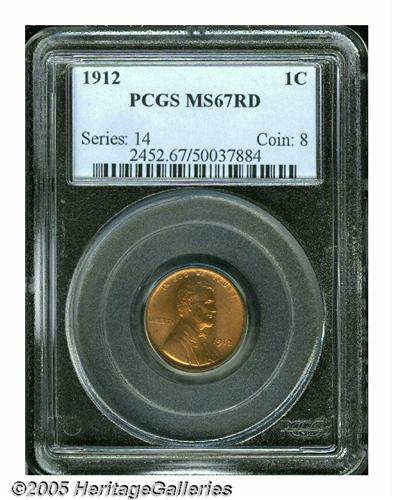 <B>1912<1C> MS67 Red PCGS.</B></I> An impeccable sunset-orange representative that is boldly defined and has miraculously escaped virtually all signs of contact and carbon. We have never seen a nicer 1912 Lincoln and both PCGS and NGC concur. Population: 7 in 67, 0 finer (6/05).<BR><I>From The William Bickel Collection, Part One.</B></I>