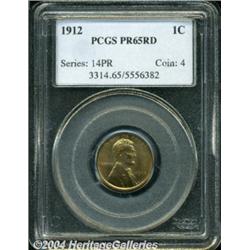 <B>1912<1C> PR 65 Red PCGS.</B></I> Boldly struck with rich copper-orange overtones. A few inconsequential carbon flecks on each side keep this well preserved matte proof Lincoln from an even loftier grade. One of the finest examples from an original mintage of only 2,145 proofs. <BR><BR><B>Important notice:</B> Heritage usually auctions material at the rate of 200-250 lots per hour. On some occasions eBay Live bid software or the Internet may not be able to keep up with the pace of the auction. We recommend placing a realistic absentee bid now as insurance to avoid disappointment. Occasionally the auctioneer may eliminate or reject an eBay Live bid, and the auctioneer may also reopen a lot after the close of the eBay live bidding (usually because we missed an audience bid), and may reject your bid even if it shows you as the winning bidder. By bidding via eBay Live, you agree that Heritage may award the lot to another bidder at its sole discretion under the circumstances described above or any other reasonable circumstances. Since eBay bids are not shown to us until we open the lot on the floor, we treat those bids just like floor bids. In most cases the floor responds before the eBay bid is presented to us, due to Internet lag time, so for consistency we have made it a policy that floor bids are always considered first over tie eBay live bids. Also please note that all Heritage lots purchased through eBay Live carry a 20% Buyer's Premium. Please make sure you read the Terms and Conditions before you bid. </span></font></tr></table></td></tr></table>