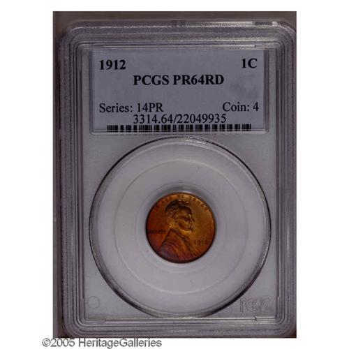 1912 1C PR64 Red PCGS. Luminous apricot-gold, and oran 1912[1C] PR64 Red PCGS.