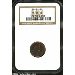 1912 1C PR64 Red and Brown NGC. Mostly orange-tan with some deepening of color on the highpoints. A.