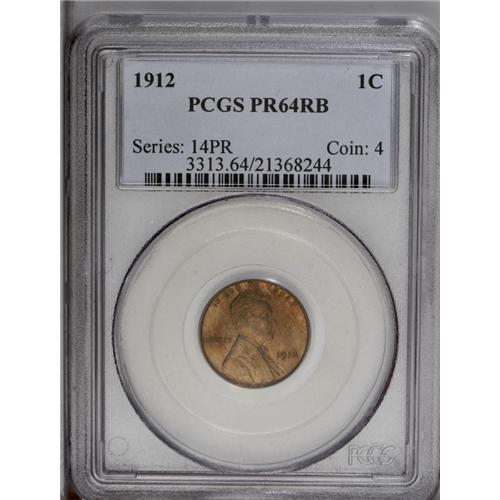 <B>1912<1C> PR64 Red and Brown PCGS.</B></I> Burnt-orange and olive-gold shades embrace this pinpoint-sharp and pleasing Choice matte proof cent. The only detectable imperfection is a hair-thin vertical mark between the EN in CENT.<BR><I>From The Tigard Oregon Small Cent Collection.</B></I>