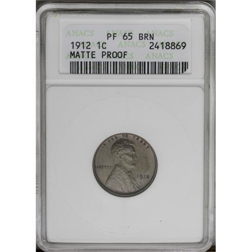 <B>1912<1C> PR65 Brown ANACS.</B></I> Pleasing medium brown, semi-glossy surfaces exhibit sharply struck design elements. A tiny fleck is noted in the right obverse field. A total of 2,145 proof examples were minted in this year, and Gem specimens such as this can be challenging.<BR><I>From The Empire Tree Collection.</B></I>