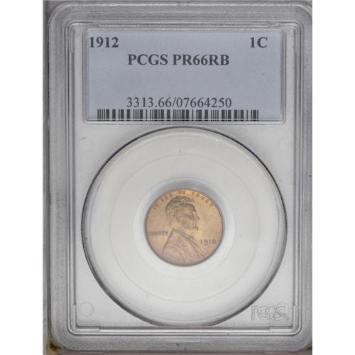 <B>1912<1C> PR66 Red and Brown PCGS.</B></I> Intricately detailed in all areas, as only a proof can be, the surfaces display the noticeable granularity common to matte proofs (or sandblast proofs, as they were known at the time). Virtually all the original red luster remains with just the slightest brown present. This piece represents an excellent value for the collector.