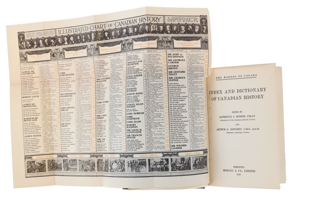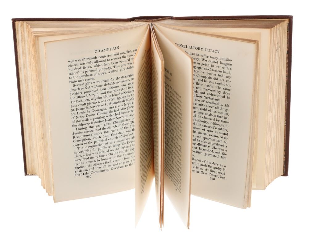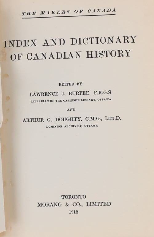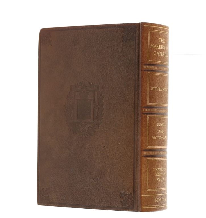 For your consideration in this lot is a 1912 First Edition XI Volume set of "The Makers Of Canada". This is an epic account of the history of early Canada. The Makers of Canada, a series of books designed to present a history of Canada through a study of its major figures. Each volume is a fascinating read, filled with many period plates, pictures, maps etc. The history of Canada was a considerable struggle, and these books provide a great insight. These are antique books, dated 1912 - the same year the Titanic sank! The original series contained 20 volumes which appeared between 1903 and 1908; an index volume was added in 1911 and a 21st volume in 1916. The publisher was George M. Morang of Toronto, and the editors were poet Duncan Campbell Scott and Professor O. Pelham Edgar of Victoria College; a third advisory editor, William Dawson LeSueur, was added later. The series sold extremely well and Morang brought out 2 less expensive 11-volume editions in 1910. This is a 1912 first edition printing of one of the smaller editions. Each book contains what was previously two different volumes. The books are bound in brown leather with stamped engraving on the cover boards and gold gilt on the spines. Intact gold gilt top edge deckled pages exhibit age tanning, no other obvious marring noted. The condition of the books is good overall with sun-fading to the spines making them a soft tan. The books measure 6.25"W x 8.25"L x 1.75"D
