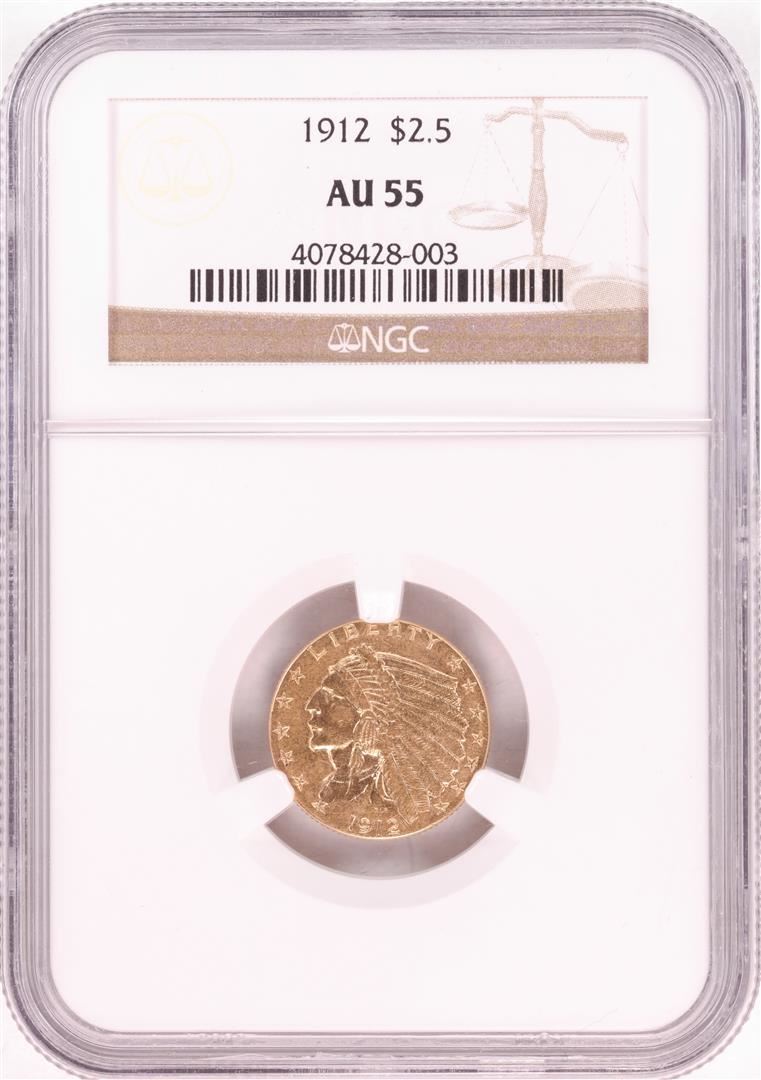One 1912 $2 1/2 Indian Head Quarter Eagle Gold Coin NGC AU55.