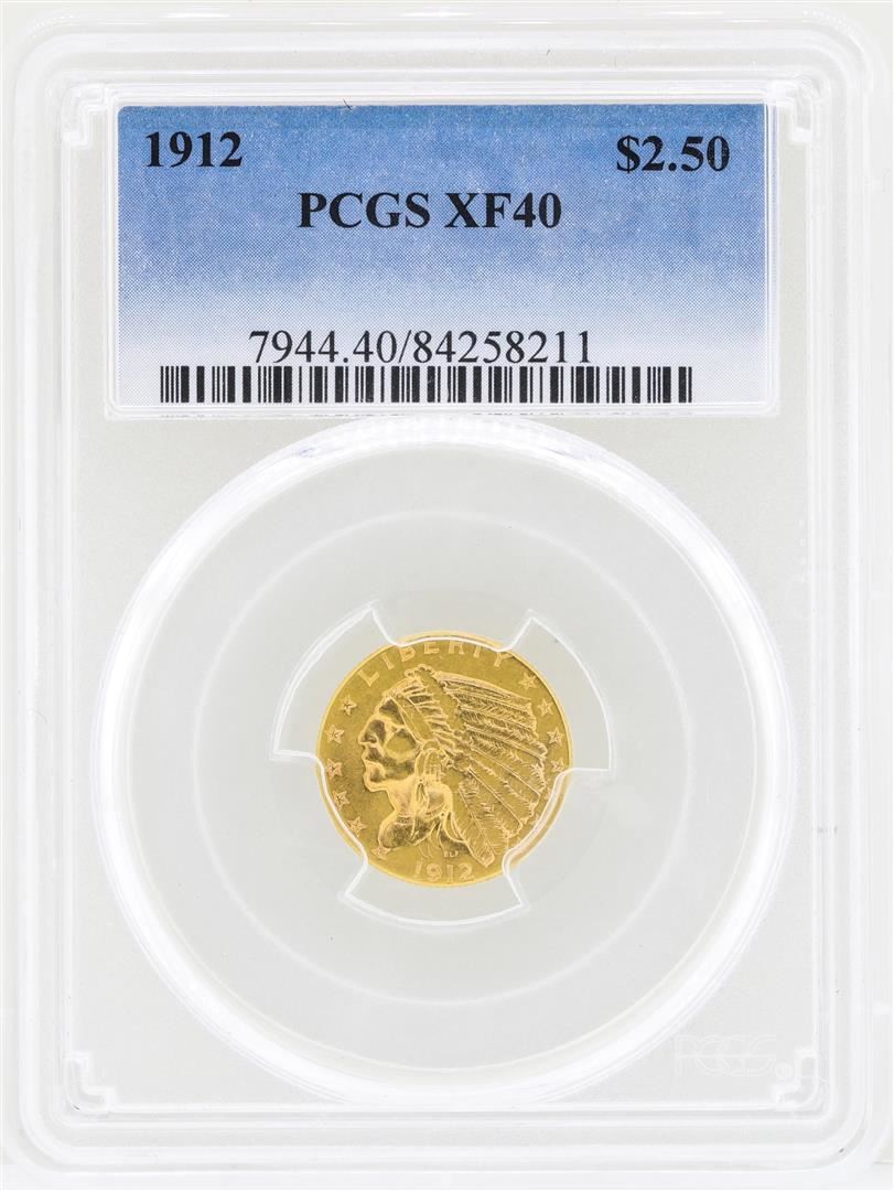 One 1912 $2 1/2 Indian Head Quarter Eagle Gold Coin PCGS XF40. PCGS Graded.
