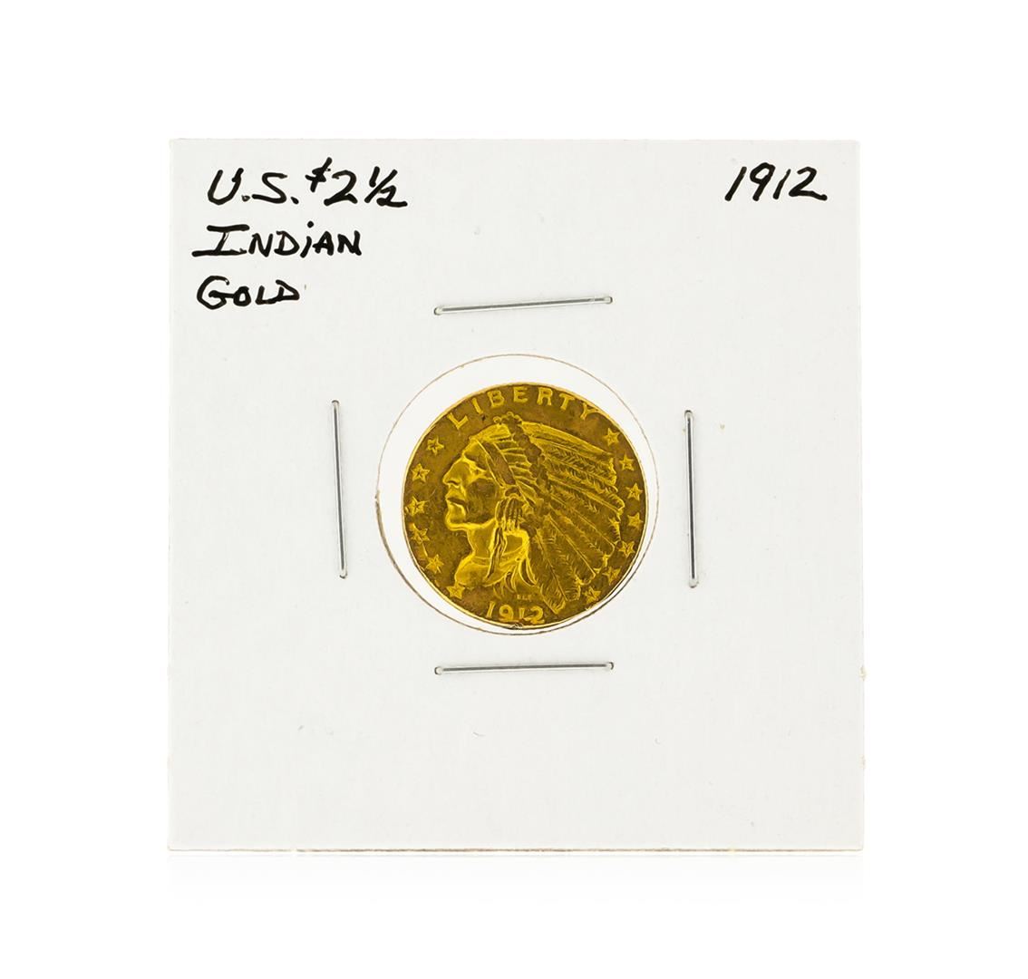 One 1912 $2 1/2 Indian Head Quarter Eagle Gold Coin.