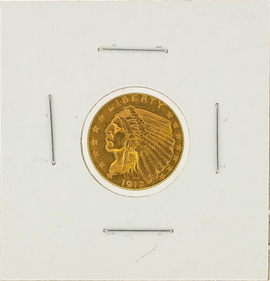 One 1912 $2 1/2 Indian Head Quarter Eagle Gold Coin.