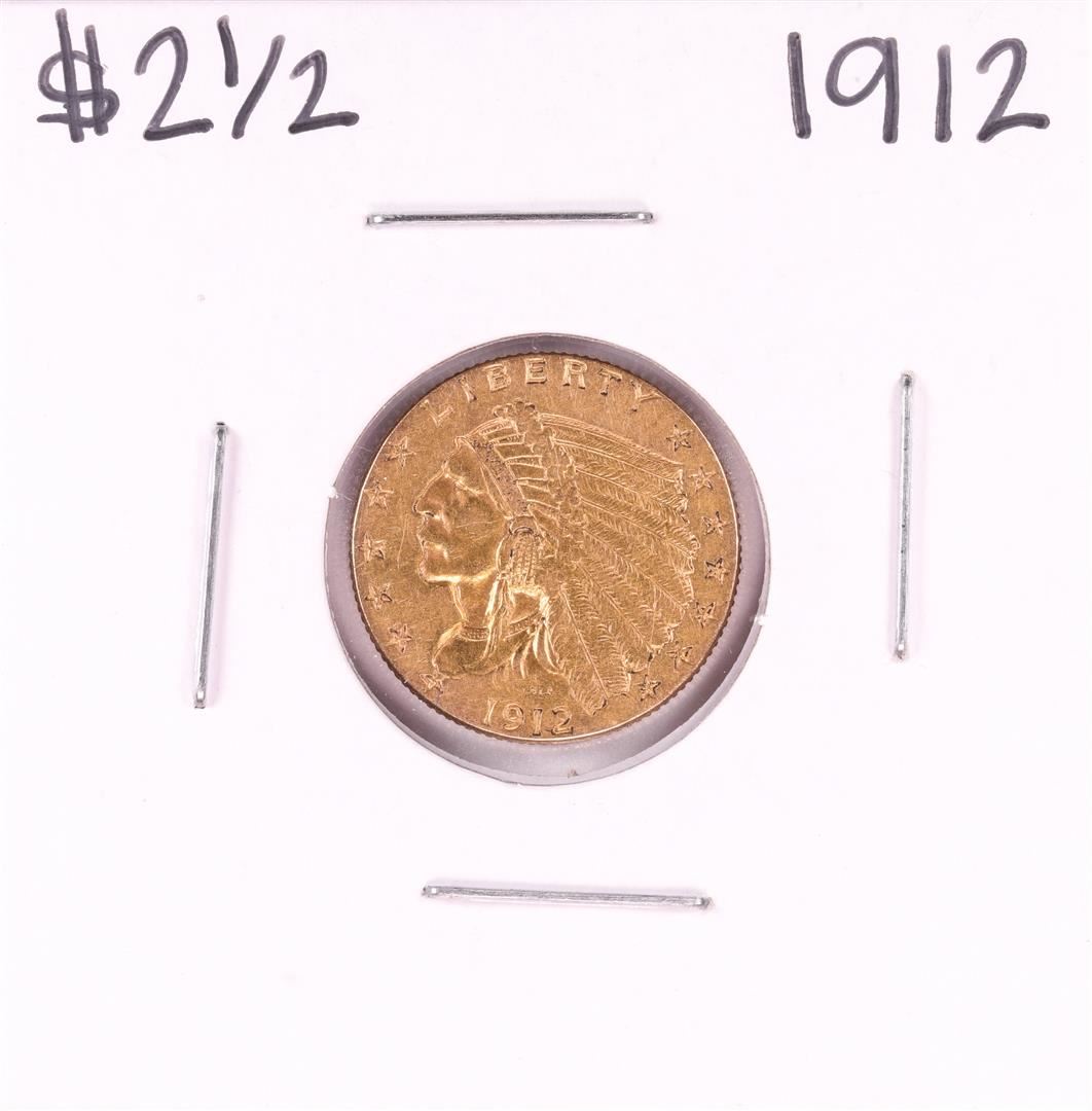 One 1912 $2 1/2 Indian Head Quarter Eagle Gold Coin.