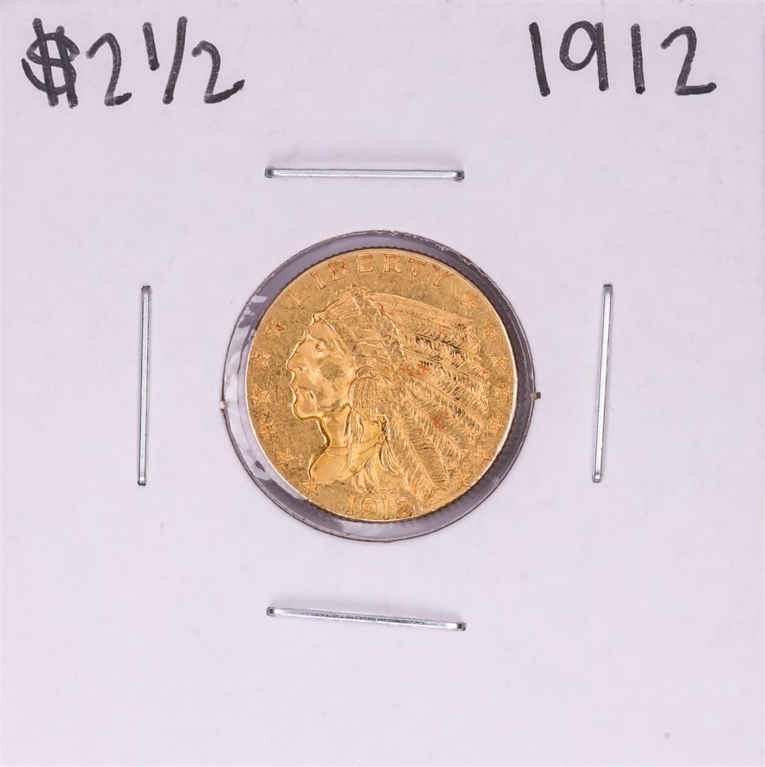 One 1912 $2 1/2 Indian Head Quarter Eagle Gold Coin.
