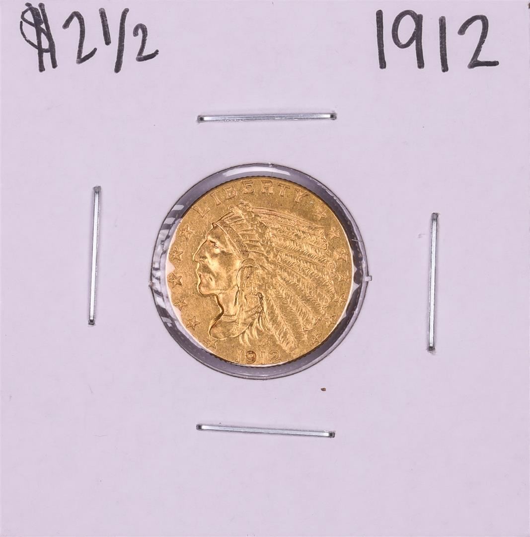 One 1912 $2 1/2 Indian Head Quarter Eagle Gold Coin.