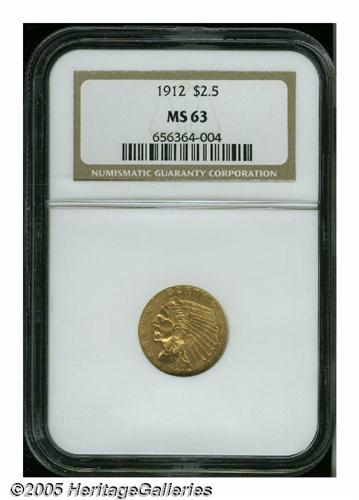 1912 $2 1/2 MS63 NGC. Well struck with pleasing,