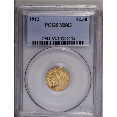 1912 $2 1/2 MS63 PCGS. Unquestionably original, both s 1912